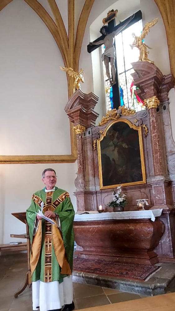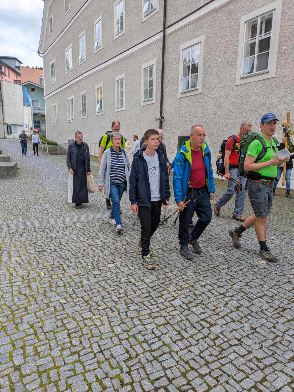 Voriges Jahr musste die Wallfahrt leider bereits nach einem halben Tag abgebrochen werden, da Niederösterreich ja bekanntlich von schweren Unwettern heimgesucht wurde. Heuer sollte es aber wieder klappen und so begann unsere Wallfahrt am 22. August mit einer Hl. Messe um 6 Uhr in der Pfarrkirche Muthmannsdorf. Danach machten sich 8 Teilnehmer inklusive P. Sebaldus auf den Weg, um die 86 Kilometer bis zur Gnadenmutter in Angriff zu nehmen. Das Wetter war uns dieses Mal sehr gewogen und so konnten wir bei angenehmen Temperaturen und vor allem ohne Regen marschieren. P. Sebaldus konnte leider nur bis Schwarzau gehen, ab dort gingen wir allerdings gemeinsam mit den Pilgern aus Stollhof, womit die Gruppe auf 15 Teilnehmer anwuchs. Nachdem alle müde und mit einigen Wehwehchen, aber trotzdem wohlbehalten in Mariazell ankamen, konnten wir dort gemeinsam die Heilige Messe in der Michaelskapelle feiern, welche von P. Markus zelebriert wurde. Bei einem gemeinsamen Mittagessen wurden dann die vergangenen Tage „auf dem Weg" besprochen. Herzlichen Dank an Hans Schneeweiß und Florian Schebesta für die Organisation.